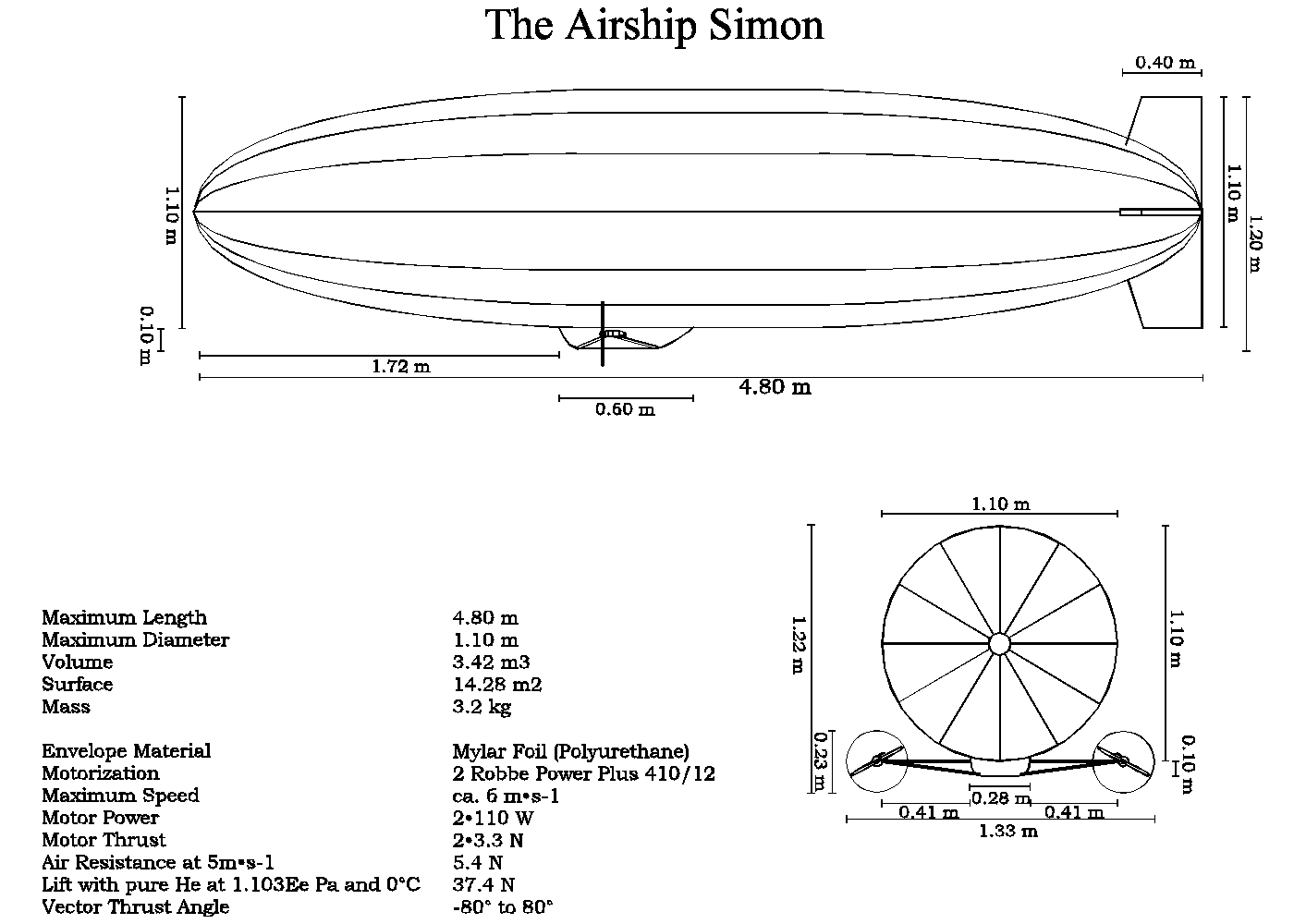speeds of up to 5 m/s and flew completely steady. Thus, the small airship